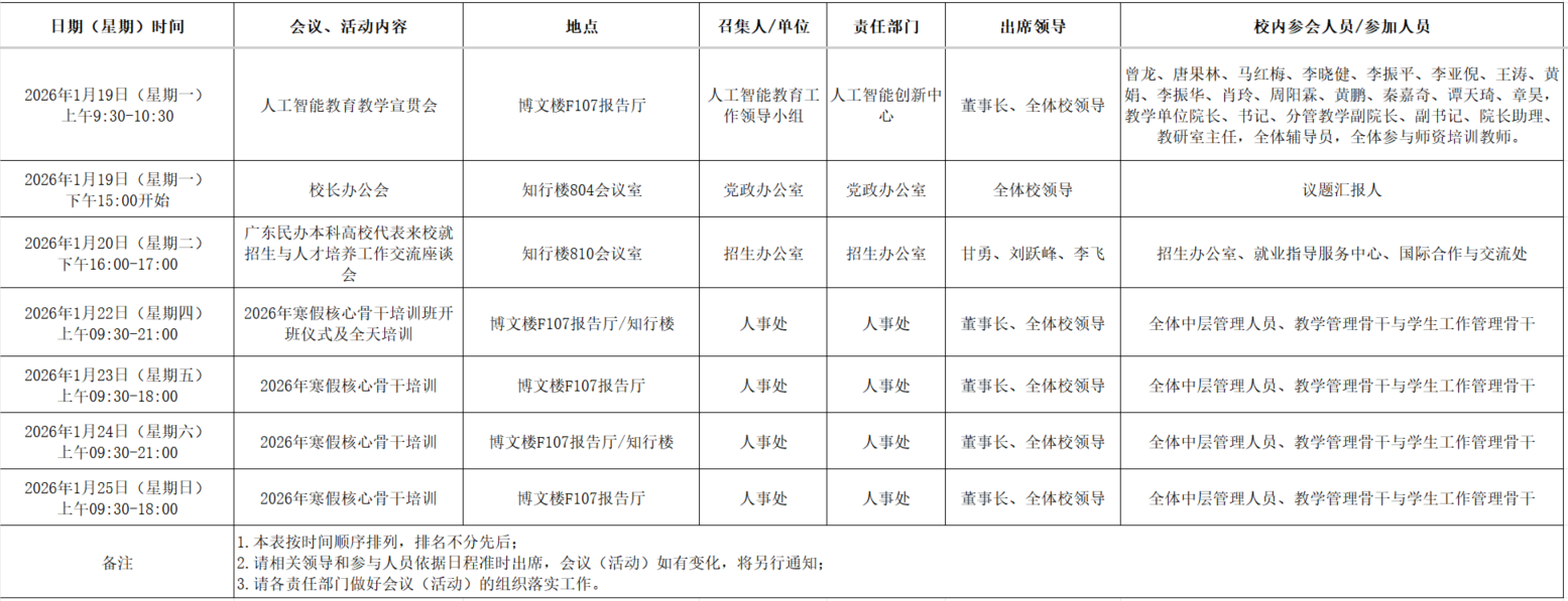 2025年秋季学期第二十一周全校性会议活动安排表