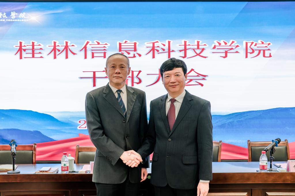 原校长梁丁丁同志向学校董事会给予的信任表示感谢;向自治区教育厅、桂林市临桂区两级党委政府关心支持表示感谢;向各兄弟院校、校企合作单位、银校合作伙伴、社会各界朋友给予学校教育事业改革发展和个人的关心支持表示感谢;并对解庆林同志新任学校校长表示祝贺。梁丁丁表示,两年多的任职期间,和同志们精诚团结,同心同欲,共同努力,共克时艰,一起度过了信科转设转型、爬坡过坎、稳中求进、以进促稳的关键两年,确保了校园安全稳定,工作中与同志们也结下了同患难、共进退的战友情谊,这份情谊弥足珍贵,值得珍惜一生。梁丁丁表示,从今天起,作为一名学校顾问,会继续竭尽所能,为学校的高质量发展尽自己的一份绵薄之力。最后,梁丁丁祝学校事业高质量发展未来可期!祝同志们身体健康!工作顺利!阖家幸福!