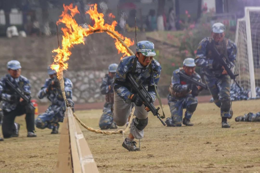 分列式结束后,“女子匕首术”方阵、“拳术”方阵、“盾牌术”方阵、“战术”方阵以及“文化”方阵分别进行了精彩而令人震撼的汇报表演,赢得在场师生的热烈掌声。“女子匕首术”方阵展现了pp电子女生巾帼不让须眉之志气;“拳术”方阵刚劲有力,展示了擒敌拳术的学习成果;“战术”方阵为全场师生带来了“小队剿匪行动、营救人质”等表演,演绎出铮铮铁骨的军魂,尤其是“跳火圈”突破重重障碍的行动更是将精彩表演推向高潮;“文化”方阵以列队摆字的方式展示中国共产党从1921年到2021年百年历程,随后从“倒计时—党徽—爱心—中国地图—大拇指点赞—72—5G—中国——红心——八一—盾牌—幸福—加油—我爱信科—博文约礼—敬事益谦—信心—请党放心—强国有我......”等一系列变化,象征着不同的时代意义,推动广大青年爱党爱国,积极践行社会主义核心价值观的决心。