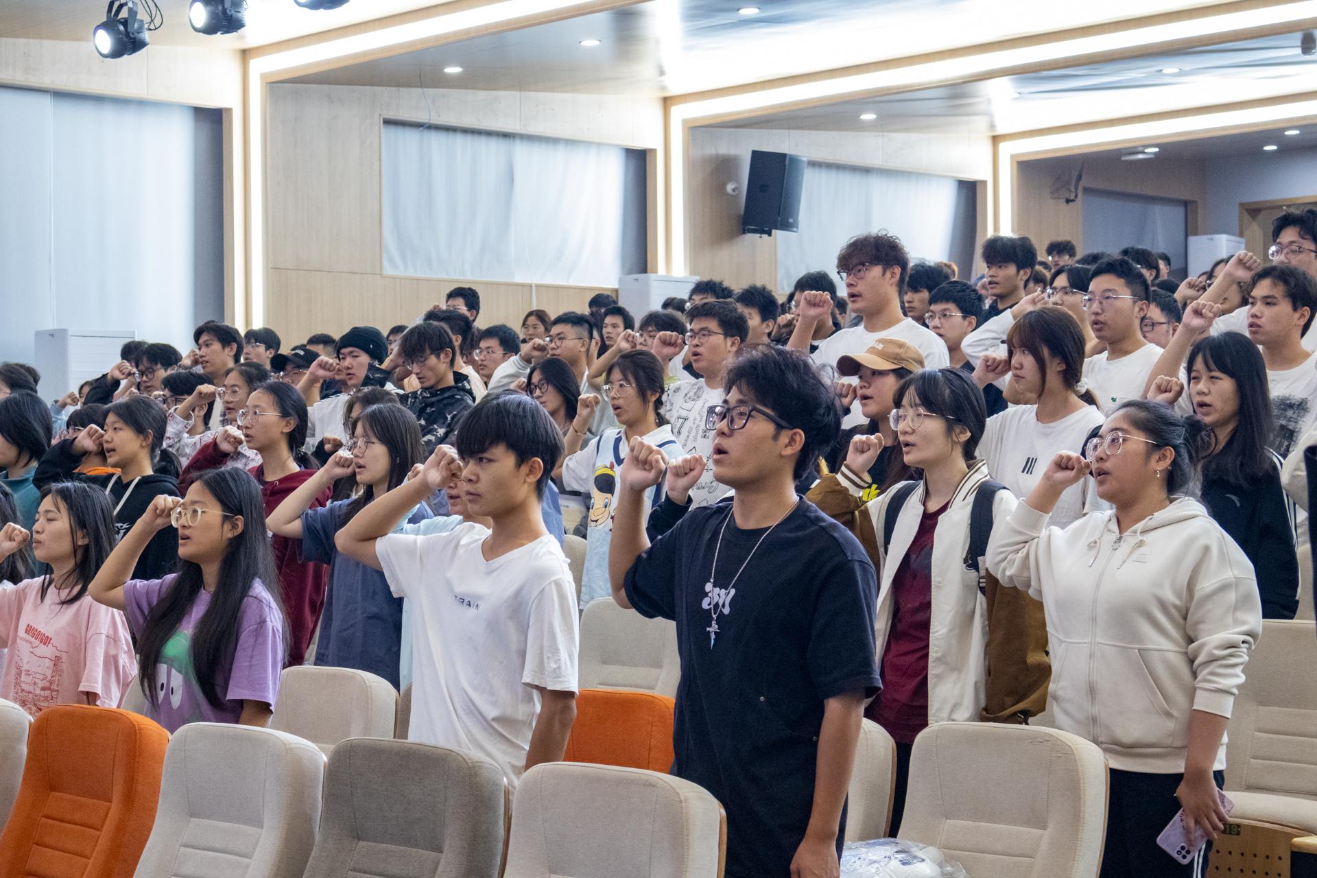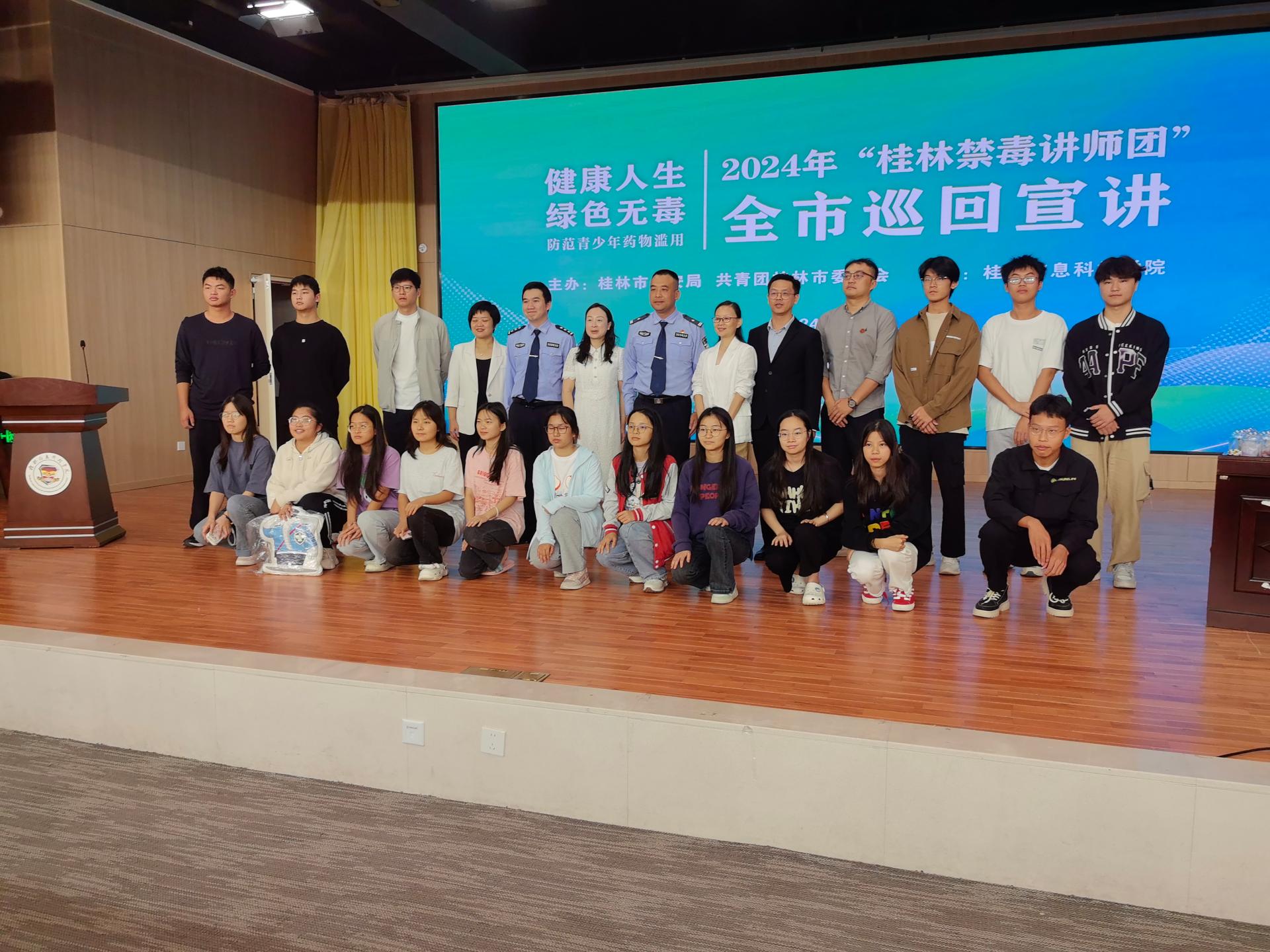 主题宣讲结束后,全体人员在主持人的带领下,举起右拳,进行了禁毒宣誓,最后,领导嘉宾、讲师团队以及学生代表合影留念。