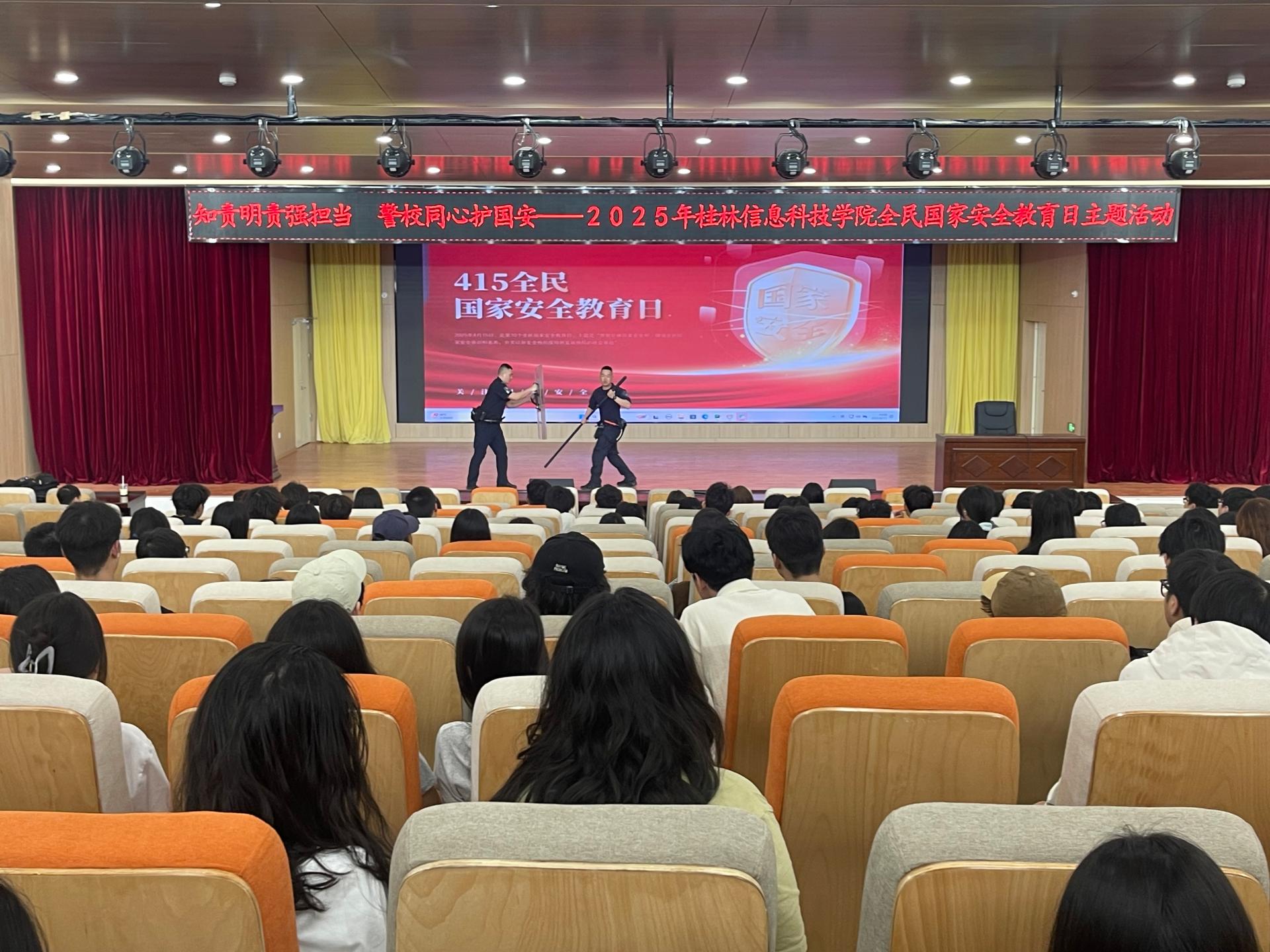 活动第二阶段,临桂分局巡特警大队突击二队队长覃冬冬,用生动幽默的语言给师生们讲解了当前的社会安全形势,并演示了作为当代大学生在社会安全中须掌握的实用安全技巧。同学们纷纷表达自己的学习感受,作为国家安全的参与者和守护者,要时刻警惕安全问题,力所能及地守护国家秘密、网络安全、社会安全等,不做危害国家安全的事。