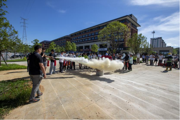 第三阶段,结合学校实际情况开展消防安全疏散演练活动。保卫处、学生发展与服务中心、后勤服务处联合临桂三元消防救援站针对学校公寓安全负责人、新入职教职员工、学生开展消防安全疏散演练,加强应急疏散知识与技能,学习灭火器、消防水带的使用技能,进一步提升师生员工的应急处置能力。