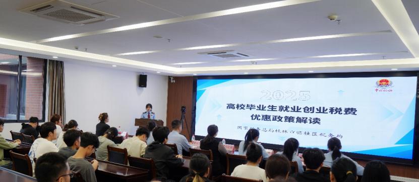 随着毕业季来临,为帮助即将步入职场的应届毕业生顺利转换角色、了解基本税务知识,2025年4月18日上午,桂林市临桂区税务局第一税务分局应pp电子财务处邀请,在知行楼818会议室为2025届毕业生举办了一场别开生面的毕业生就业创业税费优惠政策宣讲会。