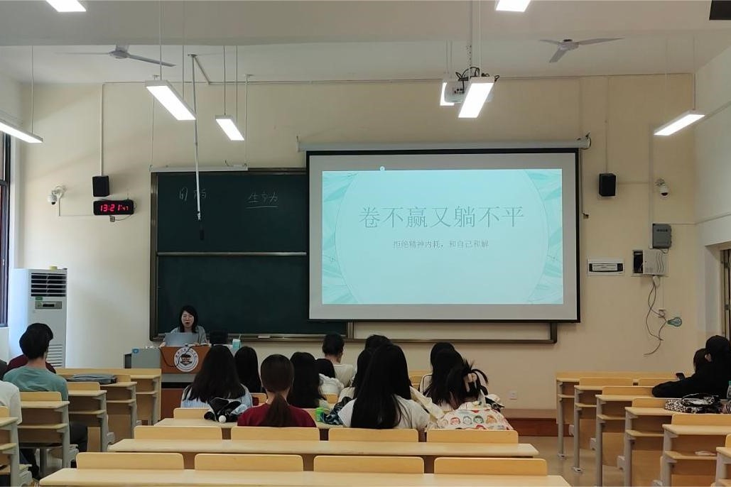 为进一步加强大学生的心理建设,我院于5月15日-5月25日开展了一次主题为“卷不赢又躺不平——拒绝精神内耗” 的心理健康知识宣传,旨在引导学生重视自身心理健康,深化学生对心灵的了解,呵护自身精神世界,从而积极面对生活和学习中的挑战。此次心理健康知识宣传活动由本学院各年级辅导员做主讲,学生分批次参加。