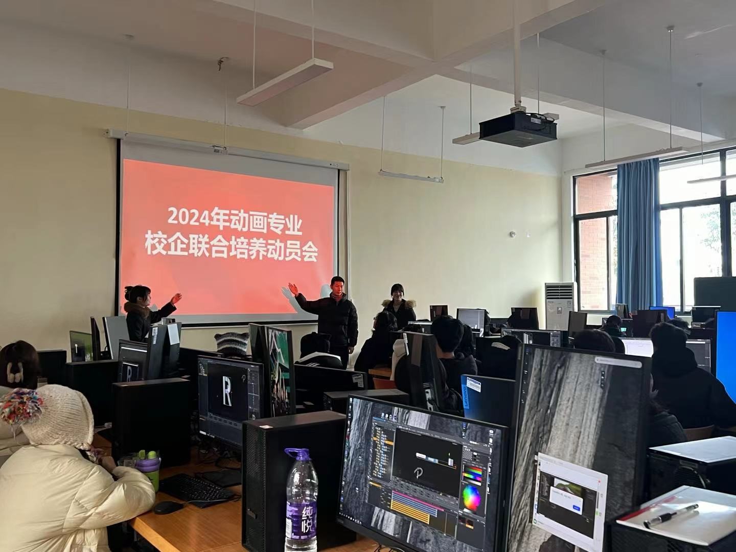 为进一步深化学校“立德树人”教育理念,动画教研室于2月28日在E117教室成功举办2024年校企联合培养动员大会。此次班会由教研室专任老师张洋主持,目的在于使同学们对校企联合培养的深远意义有更为明确的认识。