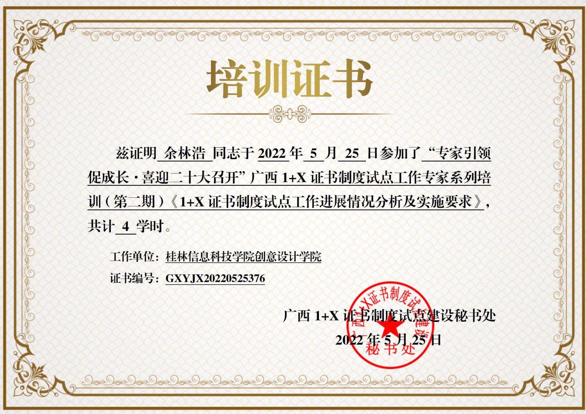 为深入推进广西1+X 证书制度试点工作,进一步提升职业教育质量,广西 1+X 证书制度试点工作专家系列培训(第二期)在近日顺利召开。学院相关专业教师参与其中,讲座由行业专家对当前试点工作的进展进行深入剖析,并对未来的实施要求作出具体指导。创意设计学院余林浩参与培训。