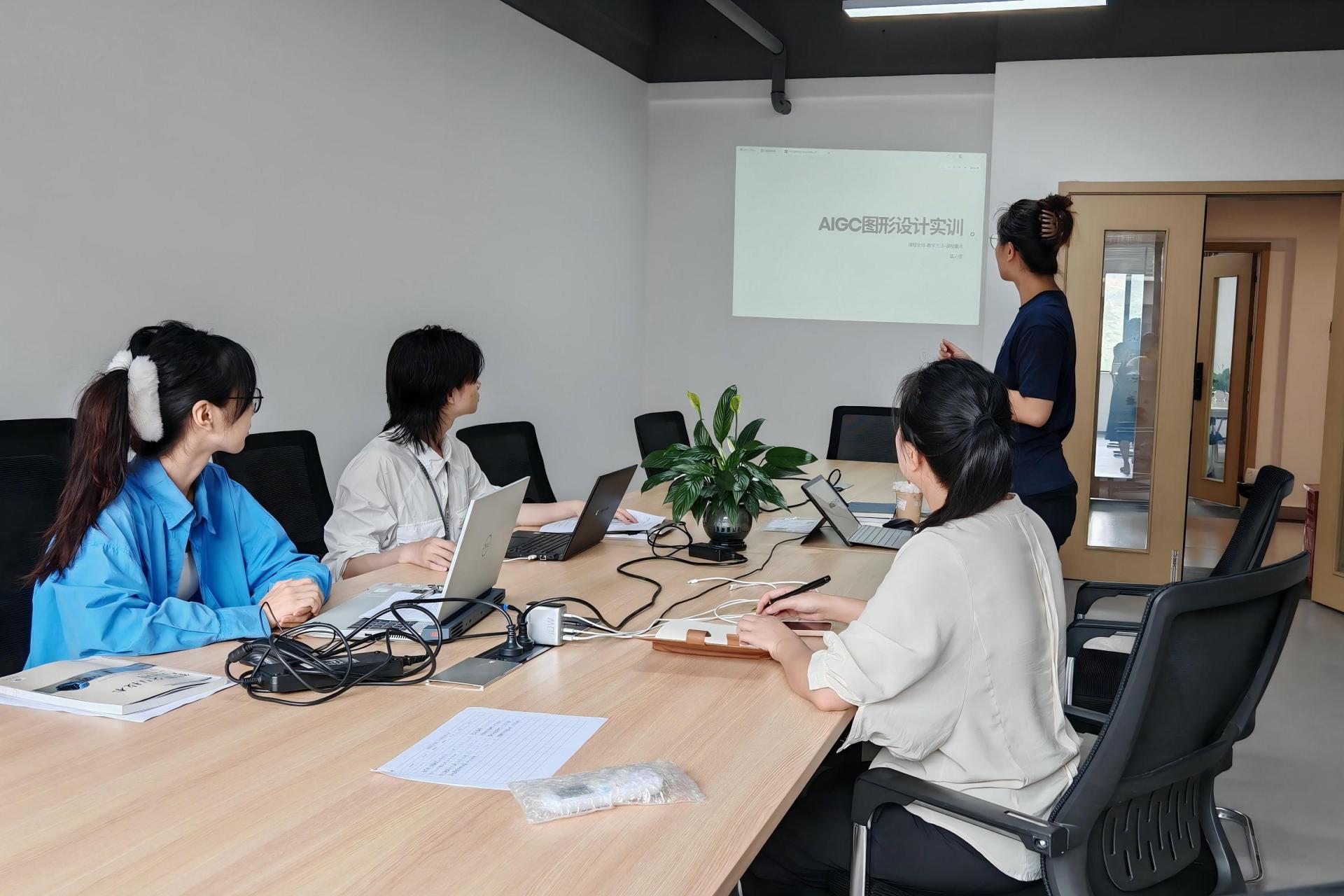 在说课过程中,教师们从教材分析、教学目标设定、教学方法选择、教学重难点把握以及教学过程设计等多方面展开阐述。《智能交互概论》课程的教师详细介绍了如何通过理论讲授与实际案例分析相结合的方式,引导学生深入理解智能交互的基本原理及应用领域,强调了理论与实践相结合的教学理念,注重培养学生的创新思维和实践应用能力。《计算机辅助图形设计》课程的教师展示了丰富的图形设计案例,讲解了如何利用计算机软件进行图形创意表达和设计实现,注重培养学生的图形设计技能和软件操作能力。《AIGC 图形设计实训》课程的教师结合当下热门的人工智能技术,阐述了如何将 AIGC 技术融入图形设计教学中,让学生掌握前沿的设计工具和方法,注重培养学生的创新能力和技术应用能力。