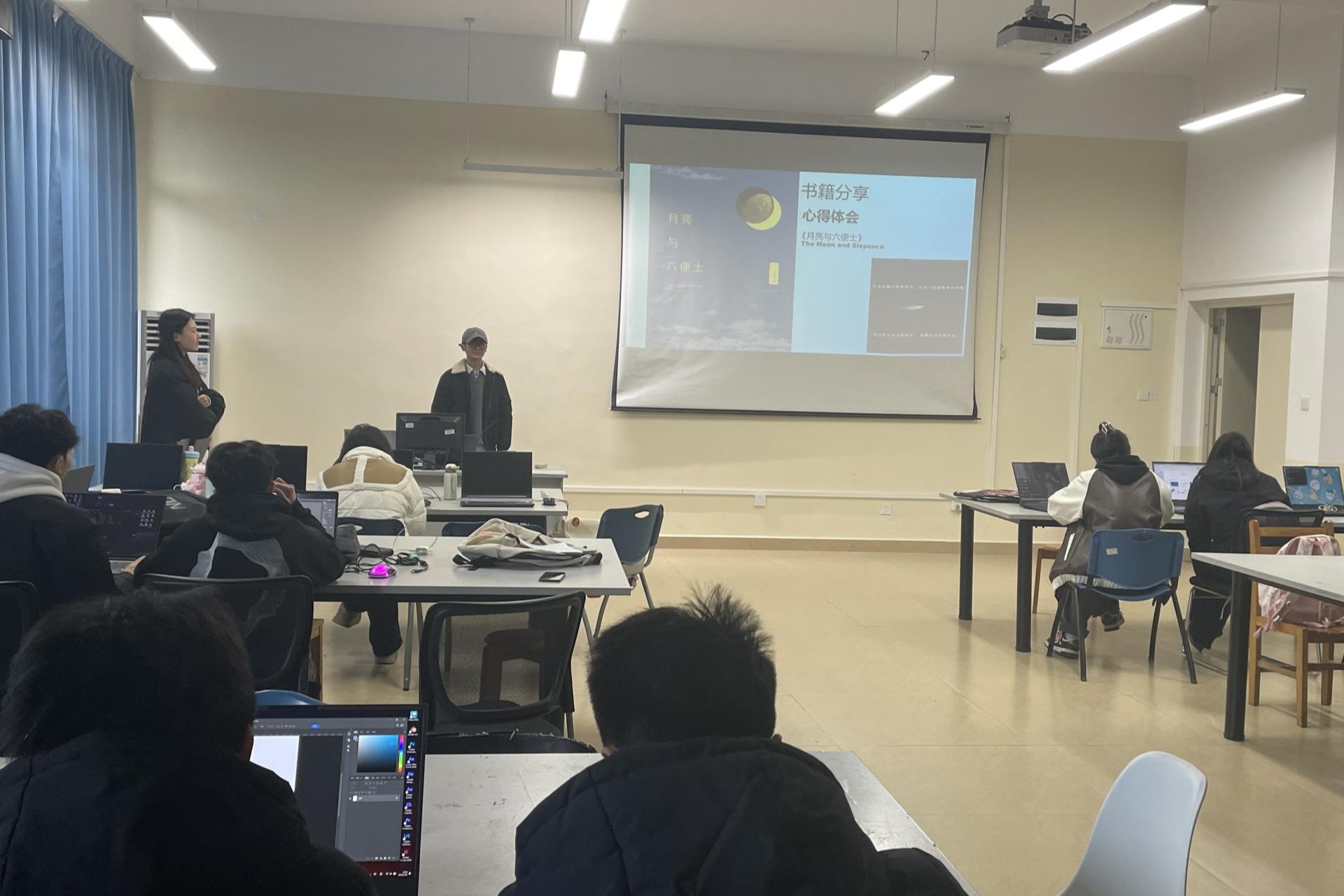 分享会上,同学们踊跃发言,积极分享自己在寒假期间阅读的书籍和心得体会。同学们分享的书籍种类丰富,涵盖了文学经典、艺术理论、科技前沿等多个领域,充分展现了数字媒体艺术专业学生广泛的知识涉猎和浓厚的学习兴趣。廖能毅同学向大家分享了阅读《月亮与六便士》。他表示,斯特里克兰德对艺术近乎疯狂的执着追求让我深受震撼,也让自己思考学习数字媒体艺术的初心,以及如何在现实与理想之间找到平衡。张雪原同学则推荐了《如何阅读一本书》一书。她认为,这本书让她意识到阅读不仅仅是获取信息,更是与作者进行思想交流的过程。此外,部分同学还结合自身专业特点,探讨了如何将阅读的收获运用到数字媒体艺术创作中。
