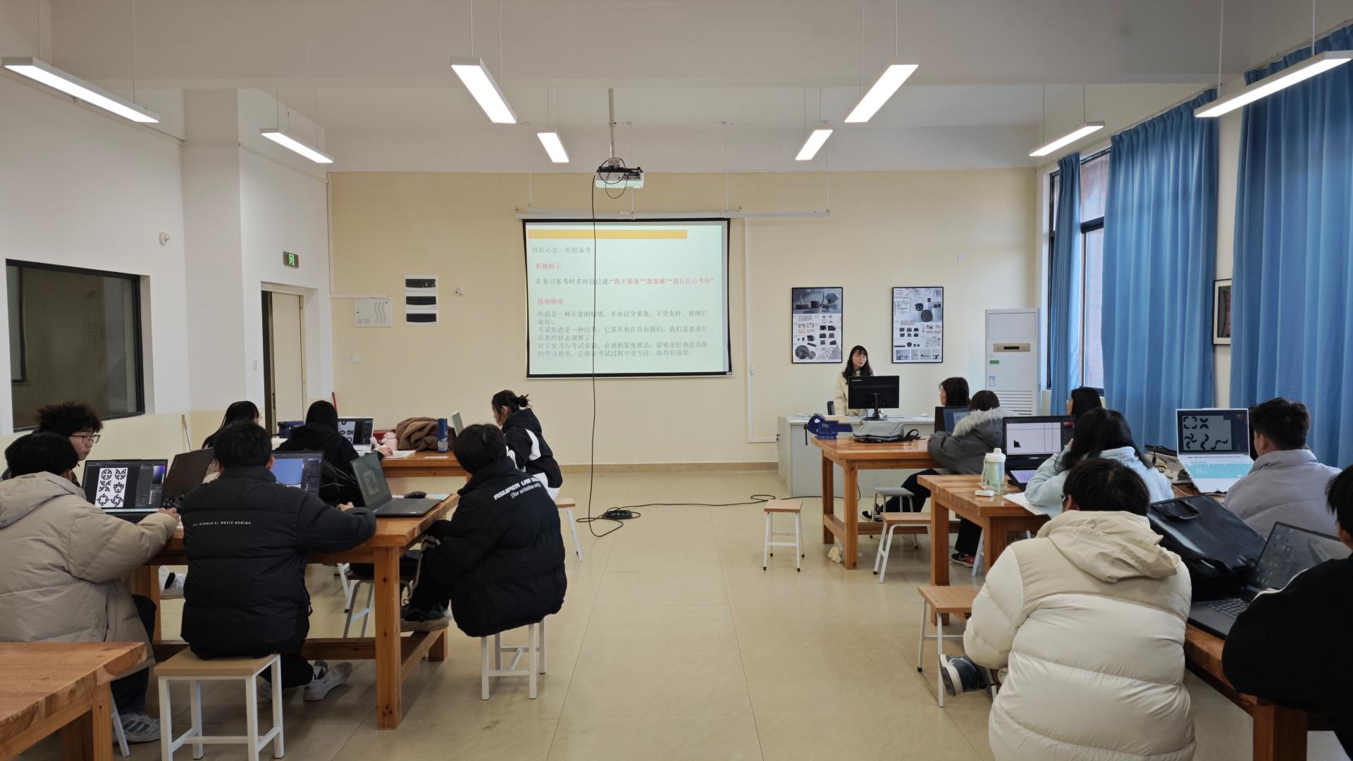 会上,张柳芝老师详细阐述了期末考试的内容、时间及挂科后果,提醒同学们务必重视此次考试。她不仅从提供了大量缓解期末考试压力的方法和复习技巧,还耐心地为同学们逐一讲解每种方法的实施步骤和可行性,帮助大家在复习期间减轻压力,提高学习效率。随后,张老师深入讲解了考试复习期间的注意事项,鼓励同学们在心理出现波动时,多给自己积极的心理暗示,如“我可以的”“我不紧张”等,以坚定信心,保持良好的心态。同时,她还强调了劳逸结合的重要性,指出适当的休息和放松能够帮助同学们恢复精力,提高复习效果。