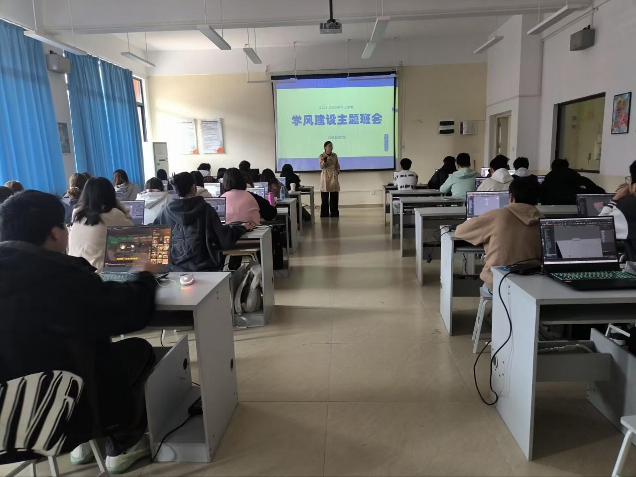 2024年11月27日,2023级数字媒体艺术专业3班在学院E411教室举办了学风建设主题班会。此次班会旨在加强学风建设,提升学生的学习态度和道德素养,为同学们的学习生活奠定坚实基础。班会由班主任刘昊老师主持,全班同学积极响应。