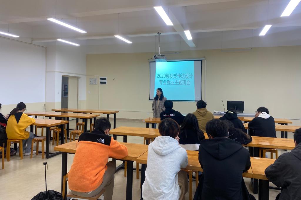 为做好2020级视觉传达设计毕业生就业动员工作,引导毕业生树立正确的择业观和就业观,使毕业生充分了解当前就业形势,全方位做好就业准备,12月7日上午,在E416教室20级视传毕业生召开了就业动员大会。会议由班主任梁瑛老师主持,2020级视觉传达专业全体在校毕业生参加会议。