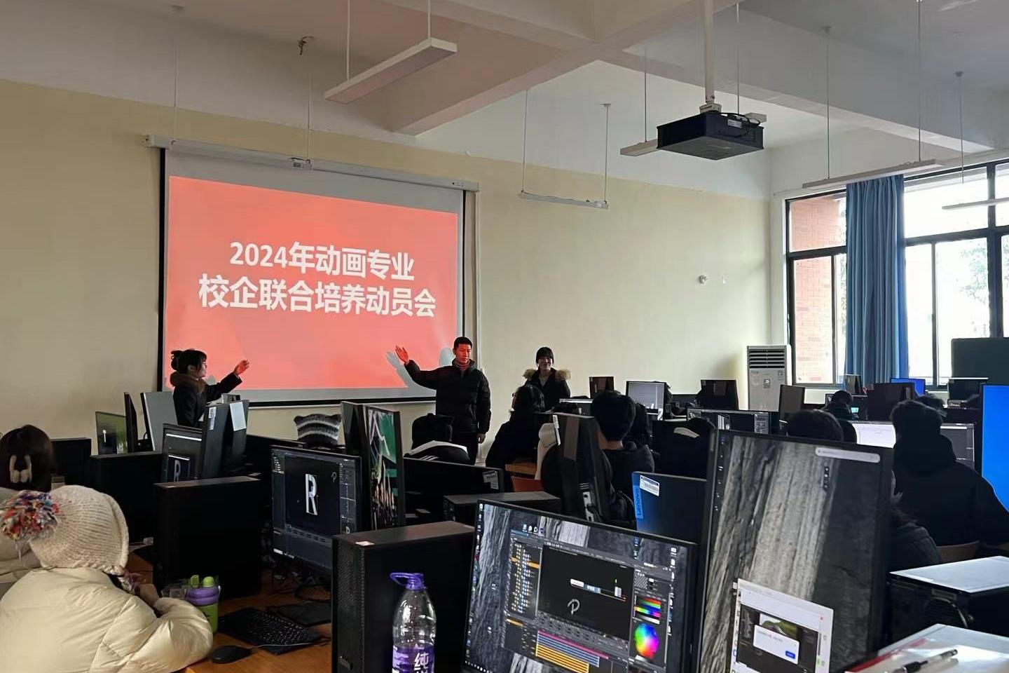 为进一步深化学校“立德树人”教育理念,动画教研室于2月28日在E117教室成功举办2024年校企联合培养动员大会。此次班会由教研室专任老师张洋主持,目的在于使同学们对校企联合培养的深远意义有更为明确的认识。