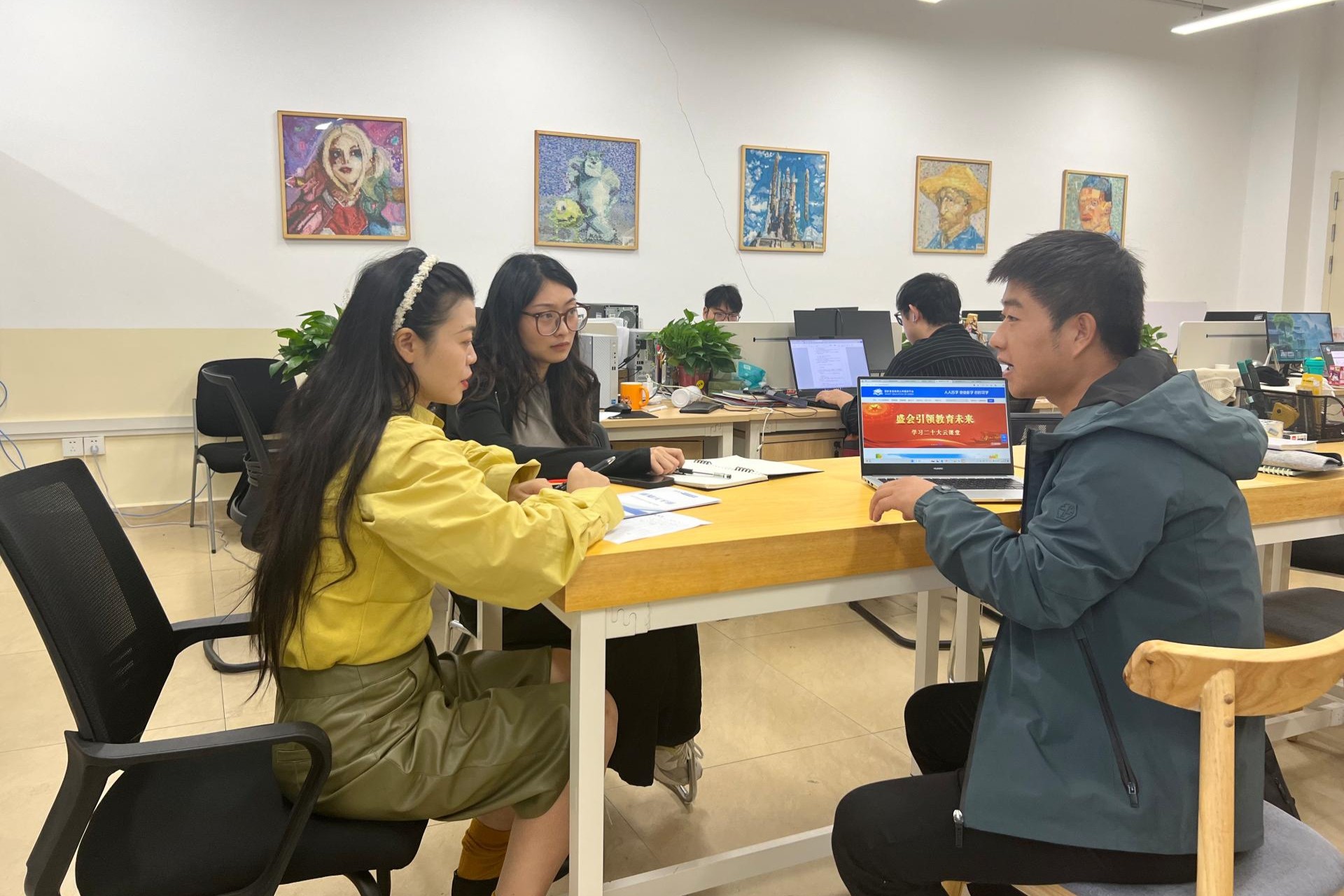 在座谈会上,伍菲主任与韩笑主任立足于学院专业建设的视角,详尽地阐述了学院的办学特色、专业发展路径、学科建设的丰硕成果以及学生素质的卓越表现。同时,广西遥知信息技术有限公司的负责人也详尽地分享了企业专注于虚拟现实与元宇宙产品研发的前瞻理念,并明确表达了与创意设计学院动画专业及虚拟现实技术专业携手并进、共同发展的深切期望。