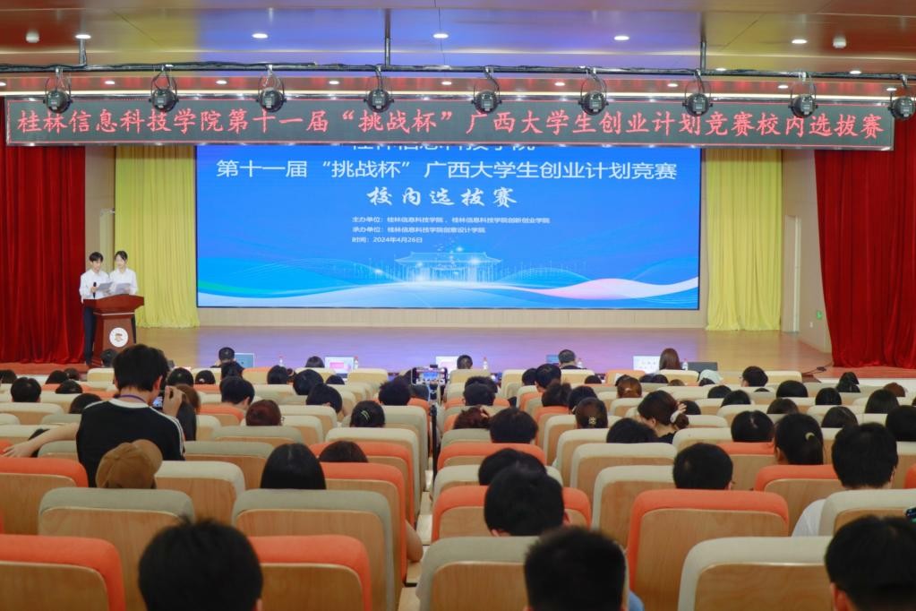 为引导和激励学生通过广泛的社会实践、深入的社会观察,激发创新精神,培育创业意识,提升创业能力,选拔出一批具有竞争力的优秀项目代表学校参加第十一届“挑战杯”广西大学生创业计划竞赛。4月26日,学校第十一届“挑战杯”广西大学生创业计划竞赛校内选拔赛在F107报告厅圆满落幕,此次比赛邀请到桂林奥创园总经理赵燕玲、桂林思佳途企业管理咨询有限公司总经理蒋斌、临桂正源商务信息咨询有限公司总经理唐中亮等一行5人担任大赛评委。学校副校长刘跃峰,创意设计学院党总支书记范恒祯、校团委书记周阳霖以及双创学院负责人、各二级学院团委书记出席本次大赛开幕式。