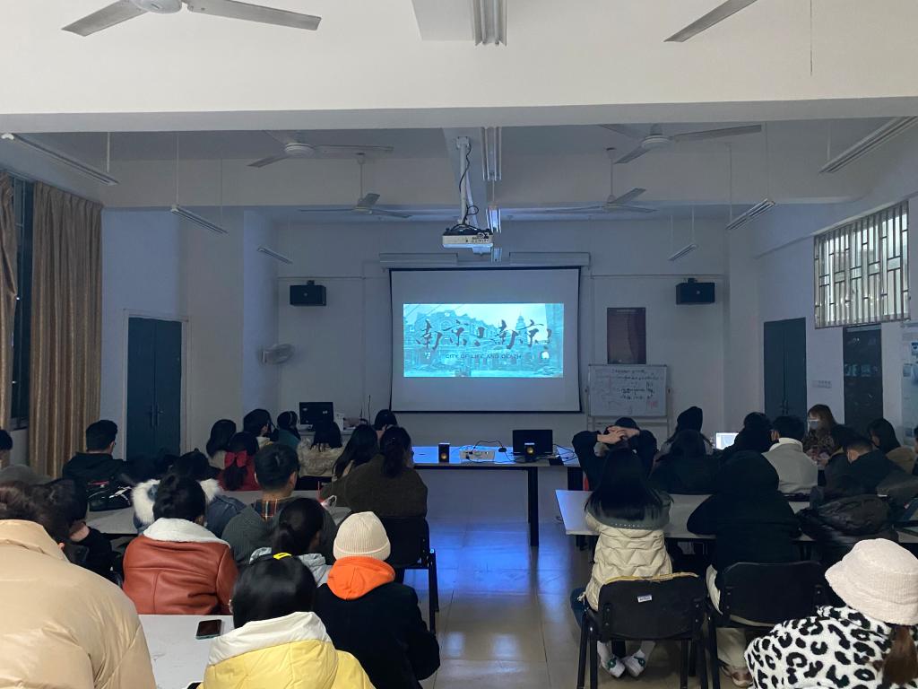 2020年12月13日是南京大屠杀83周年,为深切缅怀在南京大屠杀中牺牲的广大同胞,设计系党总支组织师生党员在42205教室观看《南京!南京!》。