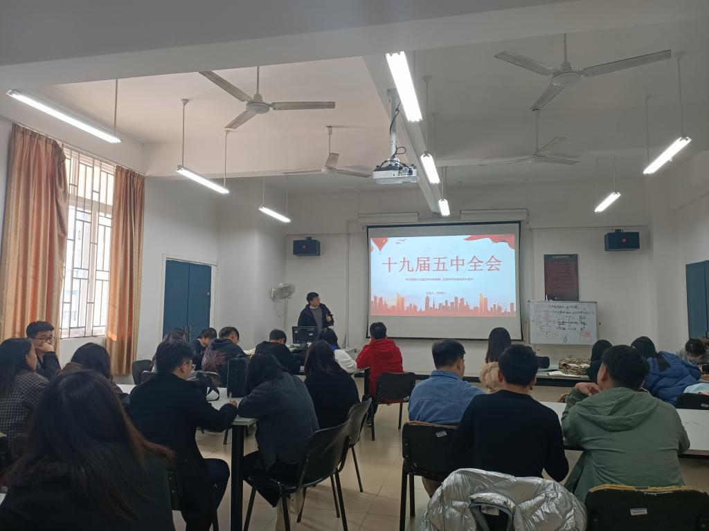 党课上,张鸿钊同志为大家详细讲解五中全会公报中的重点问题和会议精神。指出,中国共产党第十九届中央委员会第五次全体会议审议通过了《中共中央关于制定国民经济和社会发展第十四个五年规划和二〇三五年远景目标的建议》,对2035年远景目标、“十四五”时期经济社会发展作出系统谋划和周密部署,这样的远景目标必将激励党和人民奋勇前进。作为学生党员,我们应该认真学习会议内容,领会会议精神,牢记党和国家赋予我们学生党员的使命。
