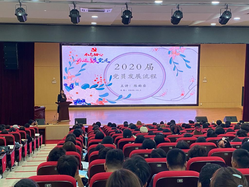 说明会上,陈韵姿老师主要讲解了从递交入党申请书到党员转正的整个流程,包含了党员发展的各个时间结点要求、材料的准备,入党的基本要求,同学们要从思想上、行动上、学业上真正准备好,端正好自己的入党动机,为自己今后要入党充分做好准备。