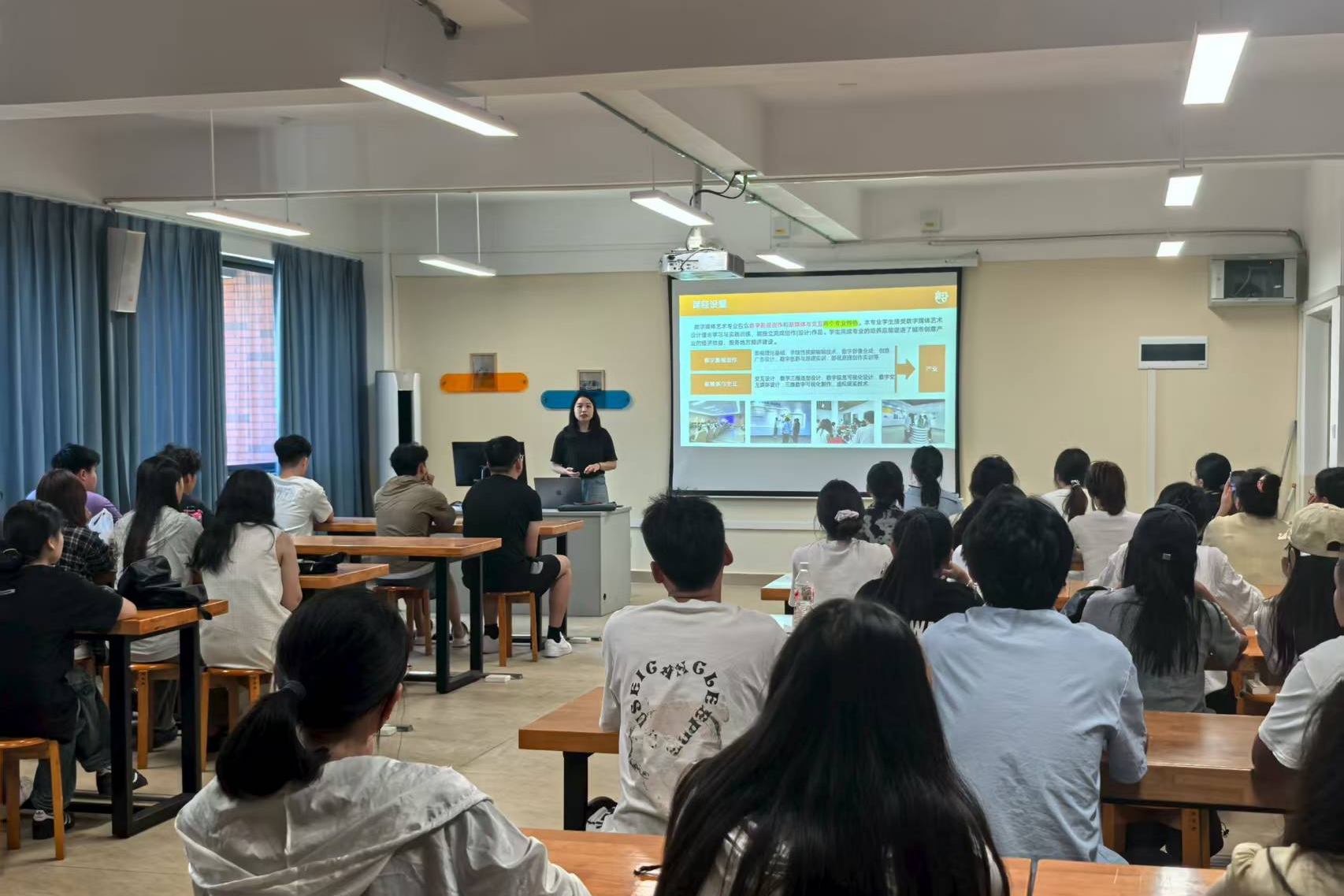 为帮助专升本新生全面了解专业特色、明确学习方向,8月31日下午,数字媒体艺术教研室在守正楼G310举办2023级专升本新生专业介绍会。会议由教研室主任兰珂老师主持,教研室教师代表及全体新生共同参与。会议伊始,兰珂老师以“数字媒体艺术:技术与艺术的融合创新”为主题,系统介绍了专业的培养目标、课程体系及行业前景。她指出,数字媒体艺术是跨学科融合的新兴领域,涵盖影视媒体、交互设计等方向,旨在培养兼具艺术审美与技...