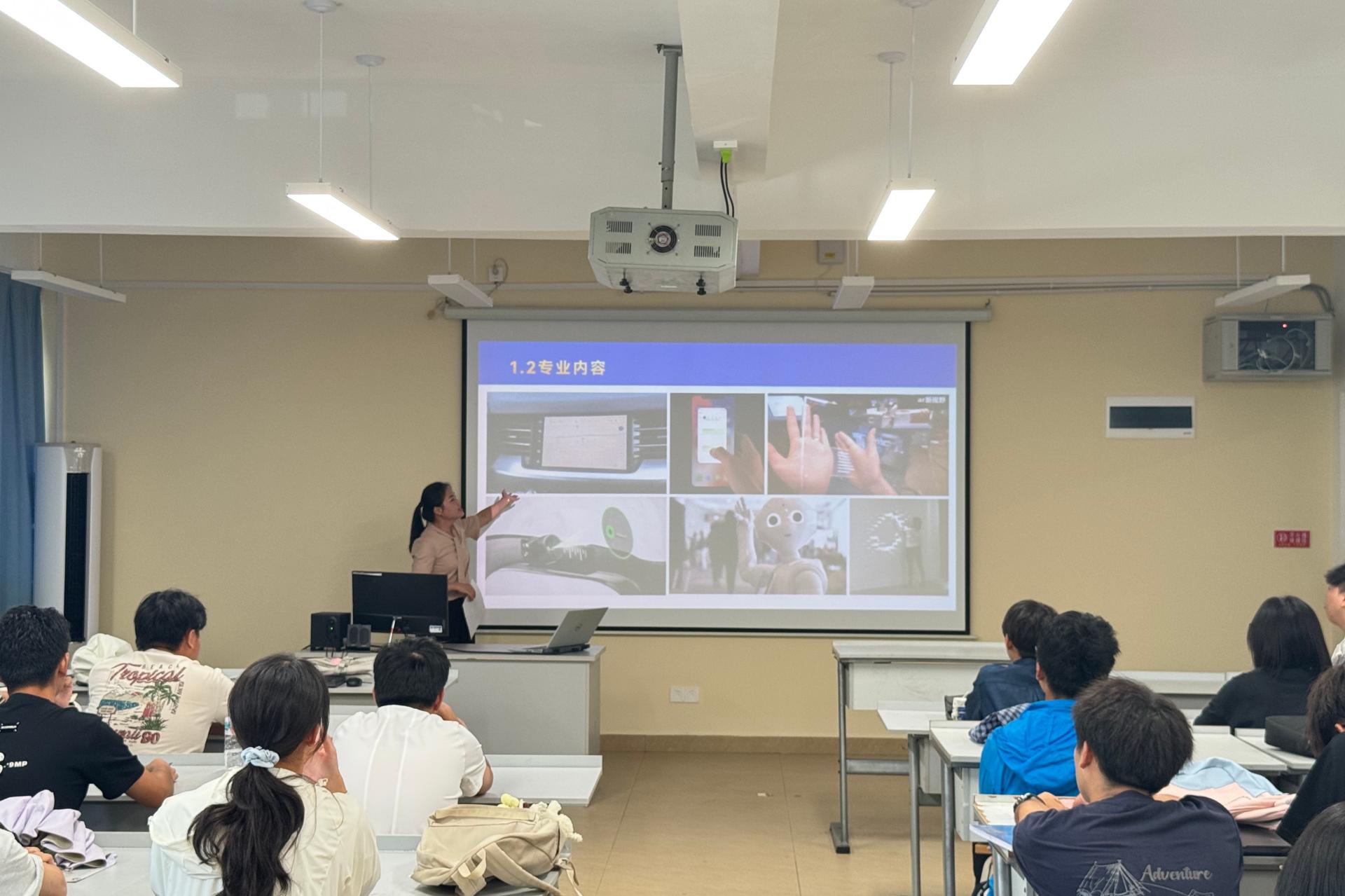 2025年9月17日,创意设计学院智能交互设计教研室在守正楼G210教室开展新生专业见面会。教研室全体教师到现场与学生进行互动交流。活动中,教研室主任王柳凤老师依次为新生介绍了“智能交互设计是什么”“智能交互设计需要学什么”以及“智能交互设计就业如何”等内容。首先,针对智能交互是什么的问题,王柳凤老师结合市场前沿的语音交互、界面交互与体感交互等让同学对智能交互产生初步了解与专业认同感。其次,王老师将智能交...