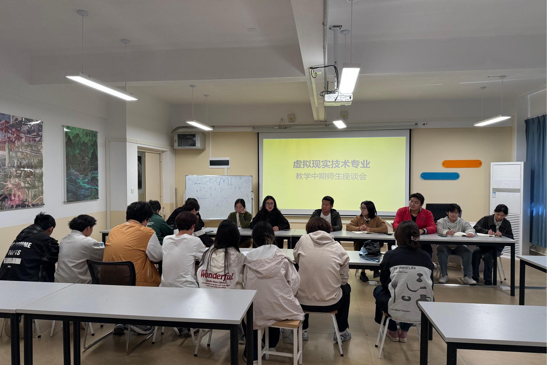 为深入了解虚拟现实技术专业学生学习动态,11月13日,虚拟现实技术专业教研室在G311组织召开本学期中期师生座谈会。教研室全体教师及各年级班委代表参会,围绕专业学习难点、班级学风建设等议题展开深入交流。会上,各班委结合班级实际情况,反映了课程衔接、实践操作、软件应用等学习中的共性问题。针对学生反馈情况,教研室教师逐一解答,并就专业课程体系设置、实践环节优化等提出改进方向。与会教师强调,虚拟现实技术作为...