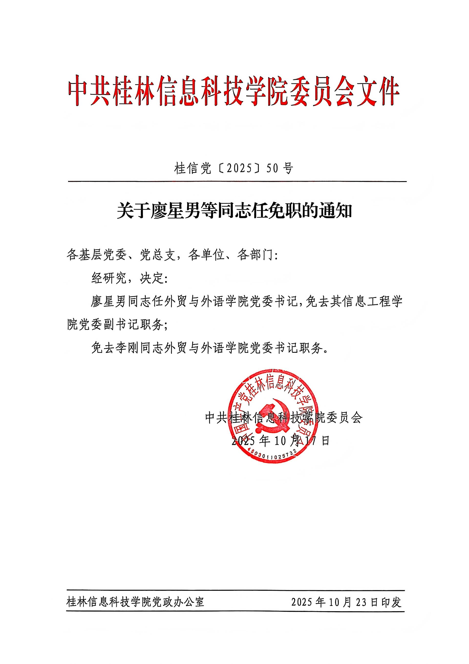 关于廖星男等同志任免职的通知