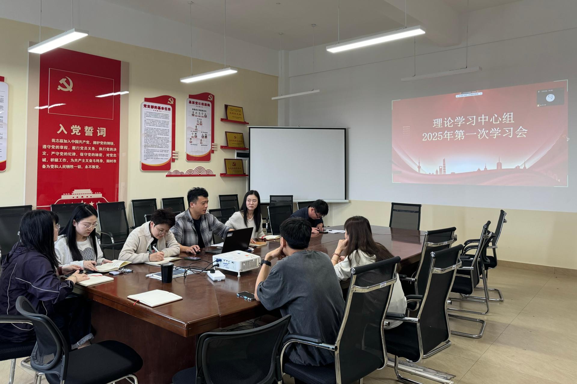 4月27日,创意设计学院党总支理论学习中心组在德远楼E504召开2025年第一次学习(扩大)会议。此次会议旨在深入学习党的创新理论成果,传达重要会议精神,并就如何进一步加强党的作风建设进行研讨交流。学院党总支委员、学院领导班子、学院各党支部书记、组织员参加学习会。会议由学院党总支书记范恒祯主持。