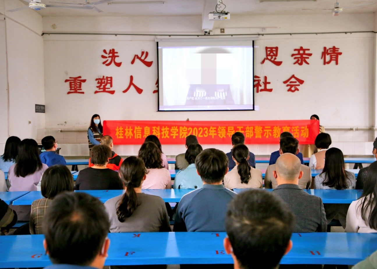 为深入贯彻落实全面从严治党要求,深化清廉学校建设,进一步增强学校管理干部廉洁自律意识和拒腐防变能力,11月10日下午,学校党委书记甘勇、党委副书记李飞、校长助理彭鹏带领学校全体中层管理干部、主管一行56人前往桂林监狱开展廉政警示教育。