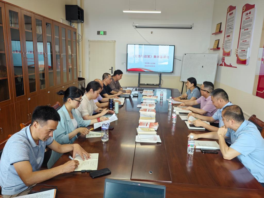 为深入学习贯彻习近平总书记对学校思政课建设作出的重要指示精神,5月31日下午,学校马克思主义学院“形势与政策”教研室召开集体备课会。学校党委书记甘勇,党委副书记李飞,党委委员、党群事务部部长王南萍参加了此次集体备课会,马克思主义学院领导班子及“形势与政策”教研室部分教师共同参加。