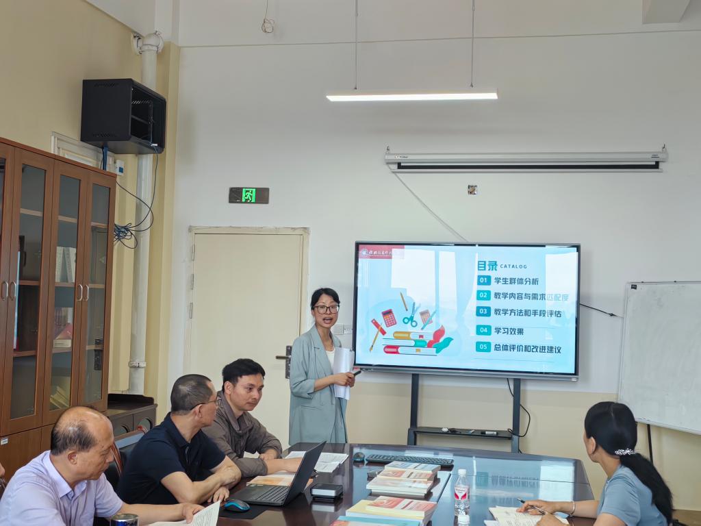 会上,赵奕老师进行了课程学情分析,在前期发放和回收的1817份调查问卷的基础上,从学生群体分析、教学内容与需求匹配度分析、教学方法和手段评估、学习效果分析、总体评价和改进建议等五个方面进行了细致分析,从学生学习视角提出了“形势与政策”课教学应把握的重点要点和意见建议;王贻正老师结合教育部文件精神和当前国际国内形势发展新趋势、新动向、新热点和学生实际情况,就《时事报告大学生版2023—2024学年度下学期》的教材内容进行了解读;吴敏波老师就“形势与政策”课程教学特点,结合学校学生的思想和心理特点进行了教法分析,提出和展示了“思政+心理”的“教学+管理”的教学方式;教研室主任赖学良老师围绕第七个专题“当前国际形势与中国原则立场”进行说课分享,主要说明了教学目的解析、重点案例选用、教学线索梳理、师生互动形式等方面的教学设计。