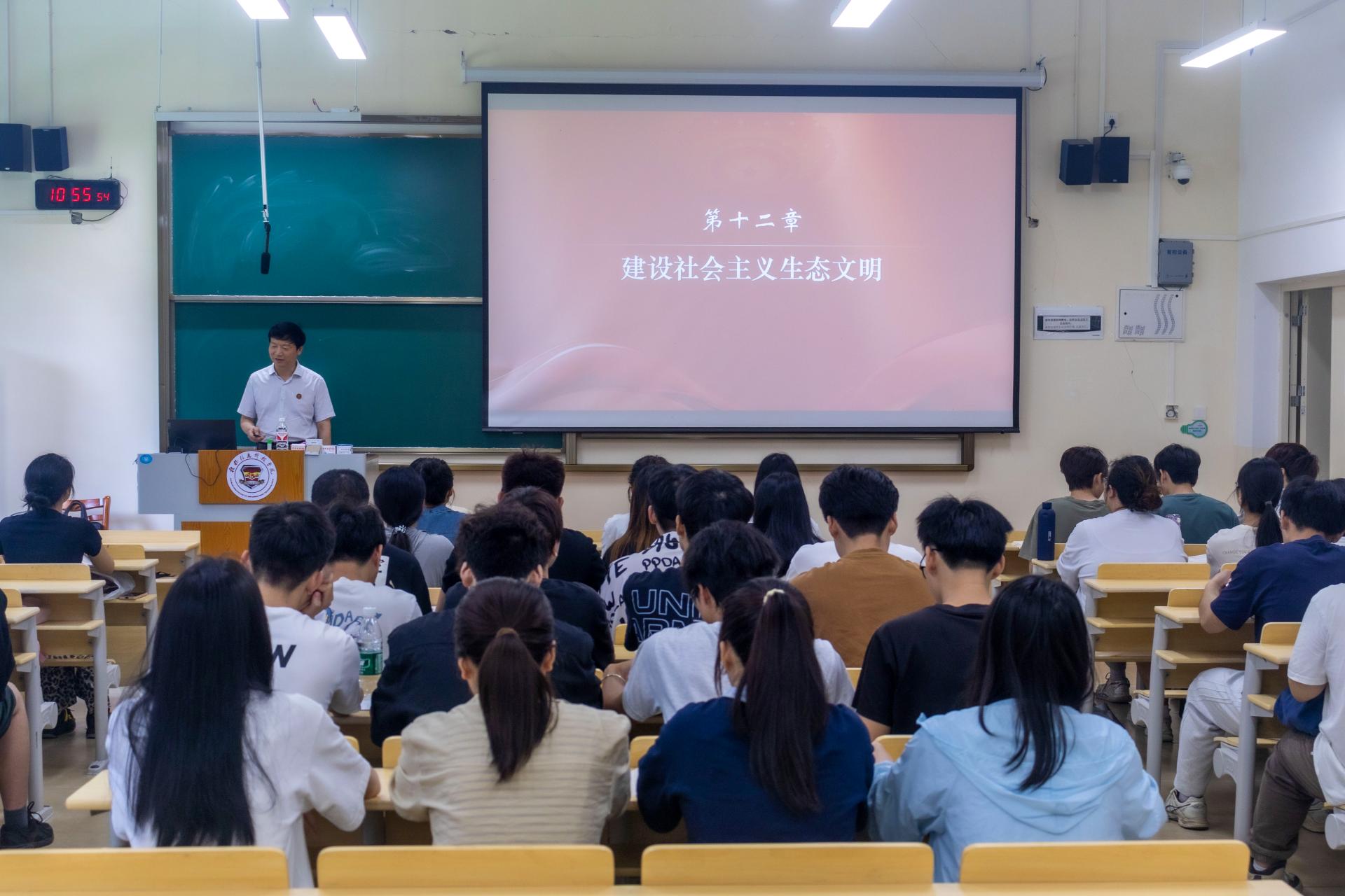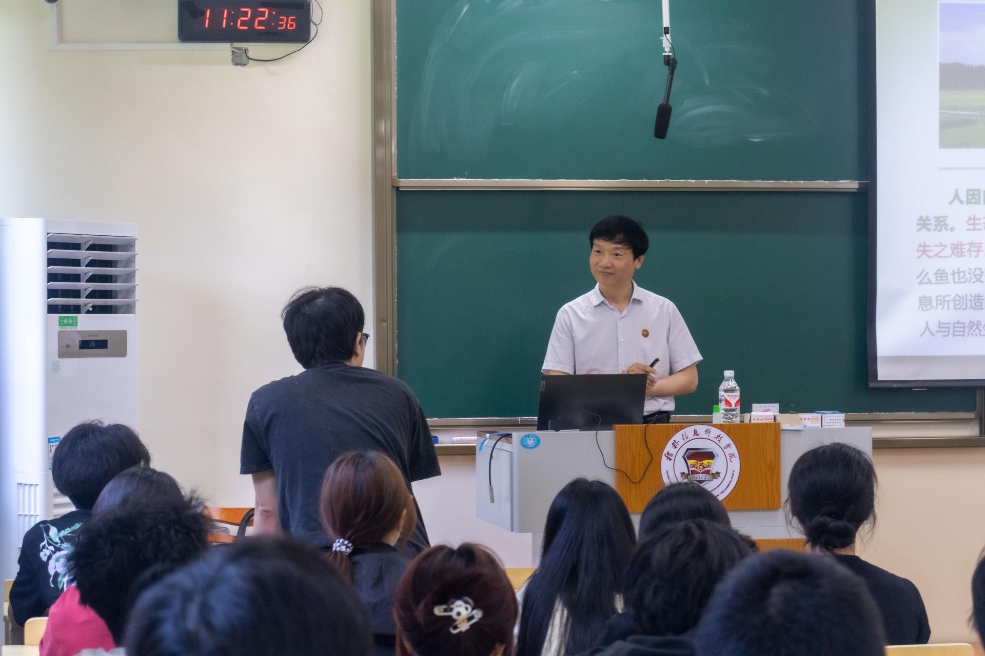 解校长从人与自然是生命共同体、建设美丽中国、共谋全球生态文明建设之路三个方面讲述了“建设社会主义生态文明”这一章节,通过生动丰富的案例和时事热点分析,深刻阐释生态文明建设是关系中华民族永续发展的根本大计。校长与同学们进行深入互动,同学们也各自分享了对生态文明的看法,更深层次地引起同学们对生态问题的关注与思考。