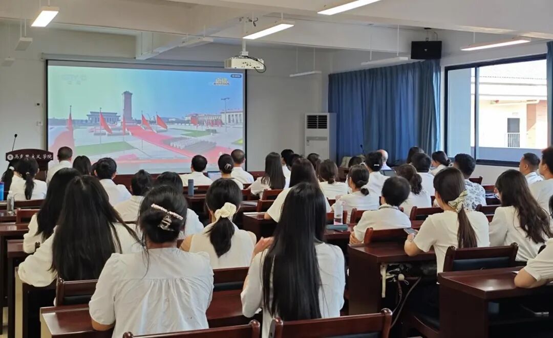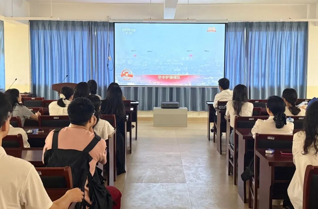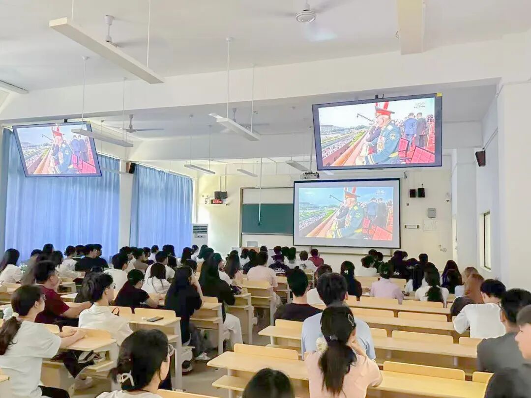 观看过程中,师生们全神贯注,不时为阅兵盛况鼓掌称赞,每个人的脸上都洋溢着由衷的骄傲与感动,浓浓的爱国情怀在每个人心中激荡。