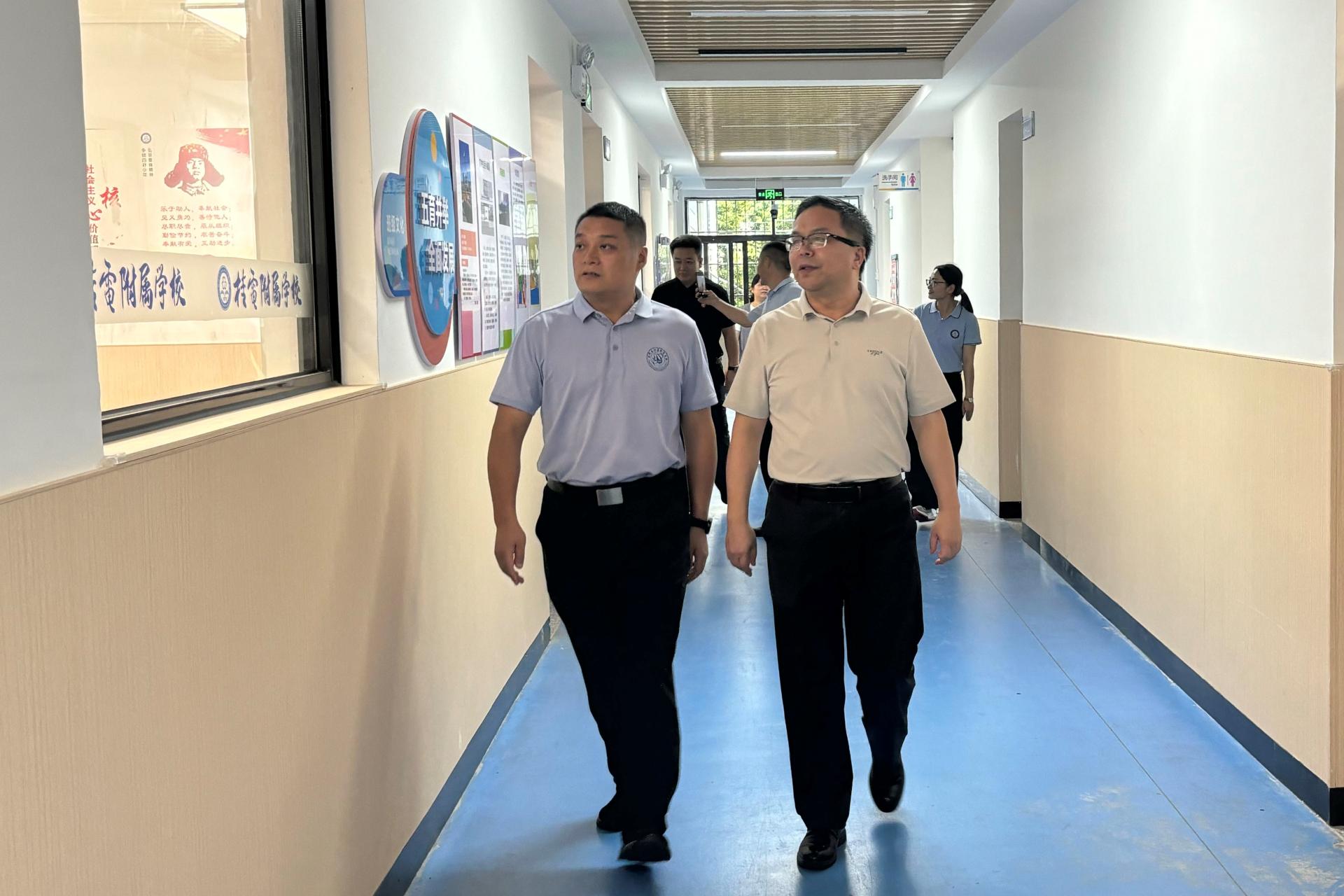 慰问团在杨剑主任的陪同下参观了校园,详细了解桂电附属学校的办学特色、师资建设及教学管理情况,双方围绕校际资源共享、教育发展等话题展开交流。