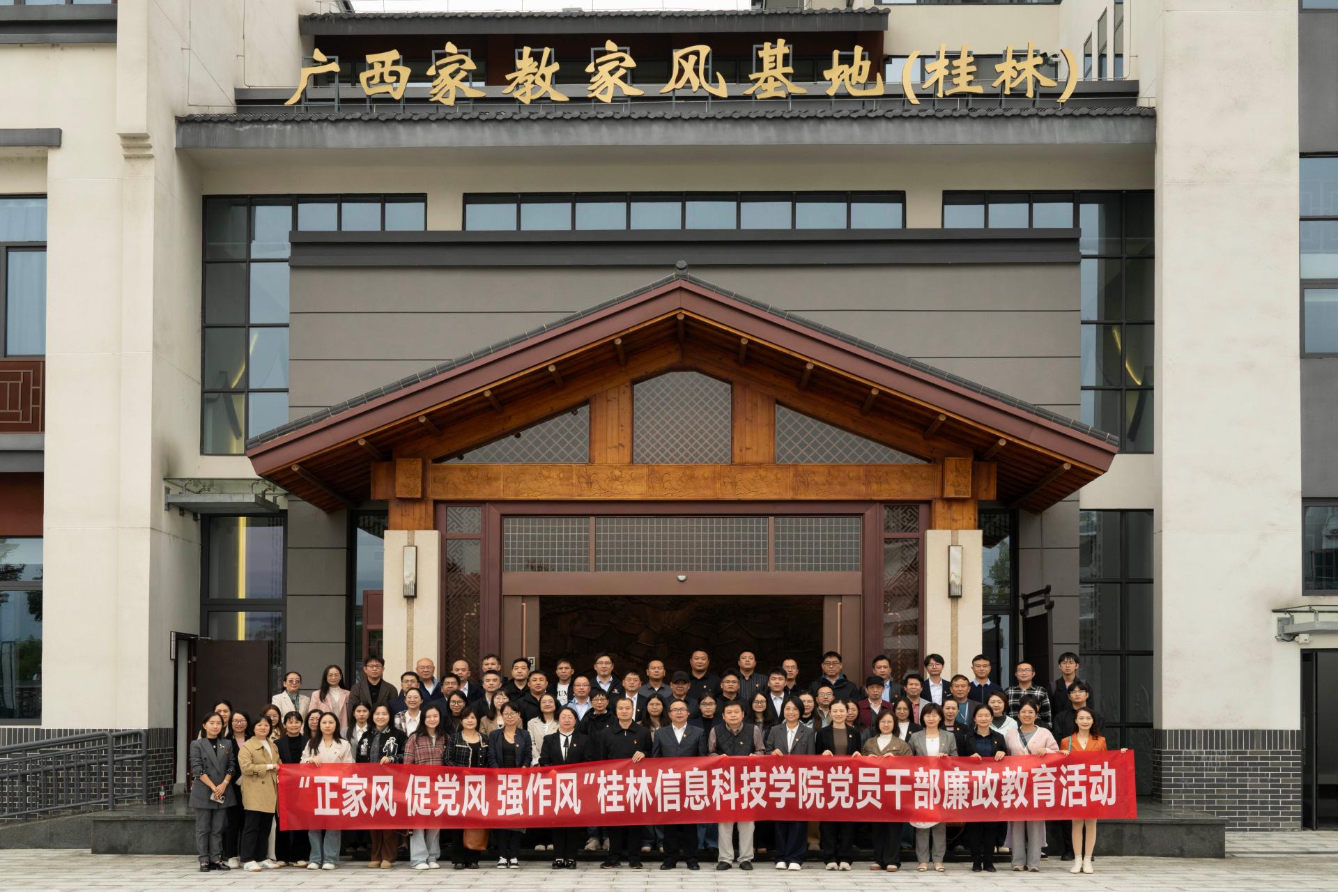 2025年11月6日下午,学校党委书记甘勇、纪委书记周璇带领学校纪检干部、中层管理干部及民主党派代表等50余人,赴广西家教家风基地(桂林),开展“正家风 促党风 强作风”主题廉政教育活动。通过沉浸式学习与互动实践,党员干部在历史与现实的交融中筑牢廉洁思想防线,为清廉学校建设注入新动能。