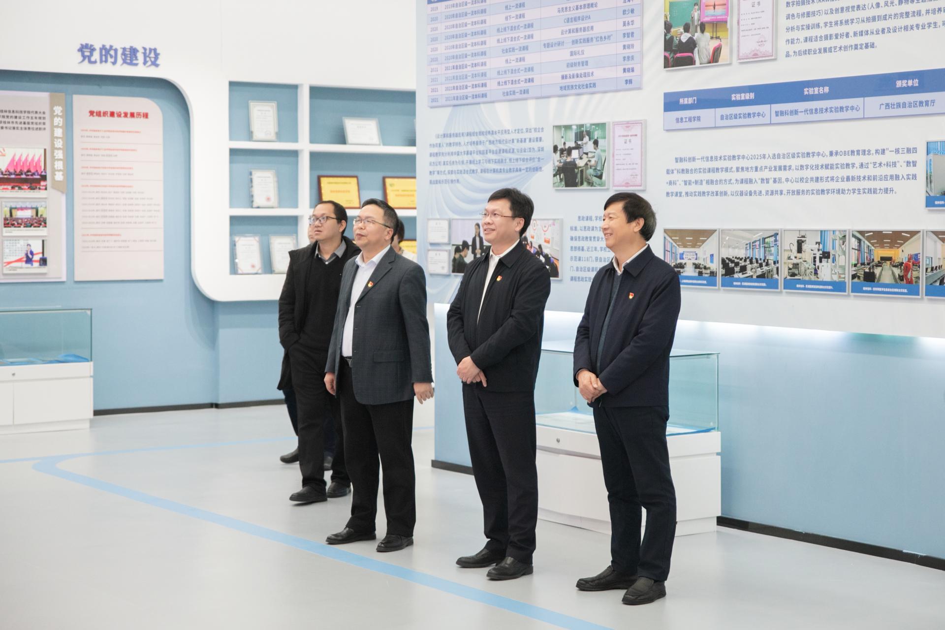 会后,唐德华书记一行实地参观了pp电子图书馆、校史馆、教师发展中心、产教融合中心、科技馆、思政馆和pp电子获批广西高校党建工作样板支部阵地建设等育人场所。