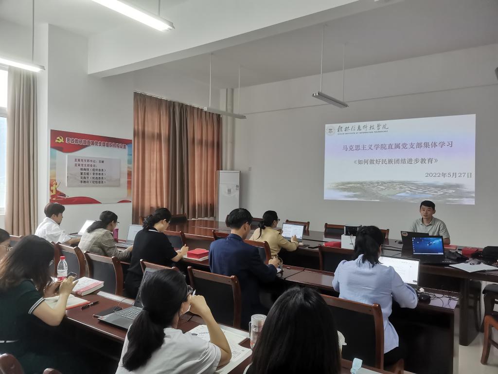 5月27日下午,马克思主义学院召开专题学习会,集中学习《深化新时代学校民族团结进步教育指导纲要》。会议由马克思主义学院直属党支部副书记王硕主持,马克思主义学院全体教师参加。