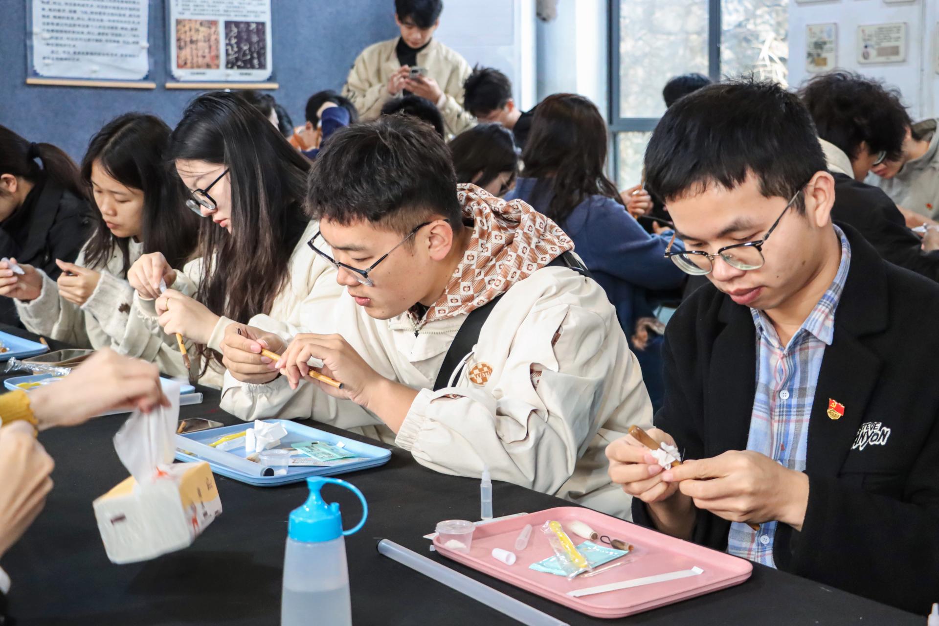 黄昌典毛笔起源于1855年,由陈春廷和黄松山创立。2010年,“黄昌典毛笔制作技艺”被列入广西壮族自治区非物质文化遗产代表性项目名录。2022年9月,黄昌典毛笔荣获世界三大设计奖之一的德国红点奖。基地负责人为我院师生党员们精心准备了竹简和笔墨,让大家体验自制廉洁书签。跟随制笔传承人的脚步,党员们一同参观了“黄昌典毛笔博物馆”,通过观看非遗项目实物、图片、视频等直观地了解了黄昌典毛笔制作技艺的历史渊源、技艺特点和传承现状。此外,还设置了毛笔非遗手作的展示和体验环节,党员们走进毛笔工艺制作室,亲手感受这项工艺复杂的制作过程。