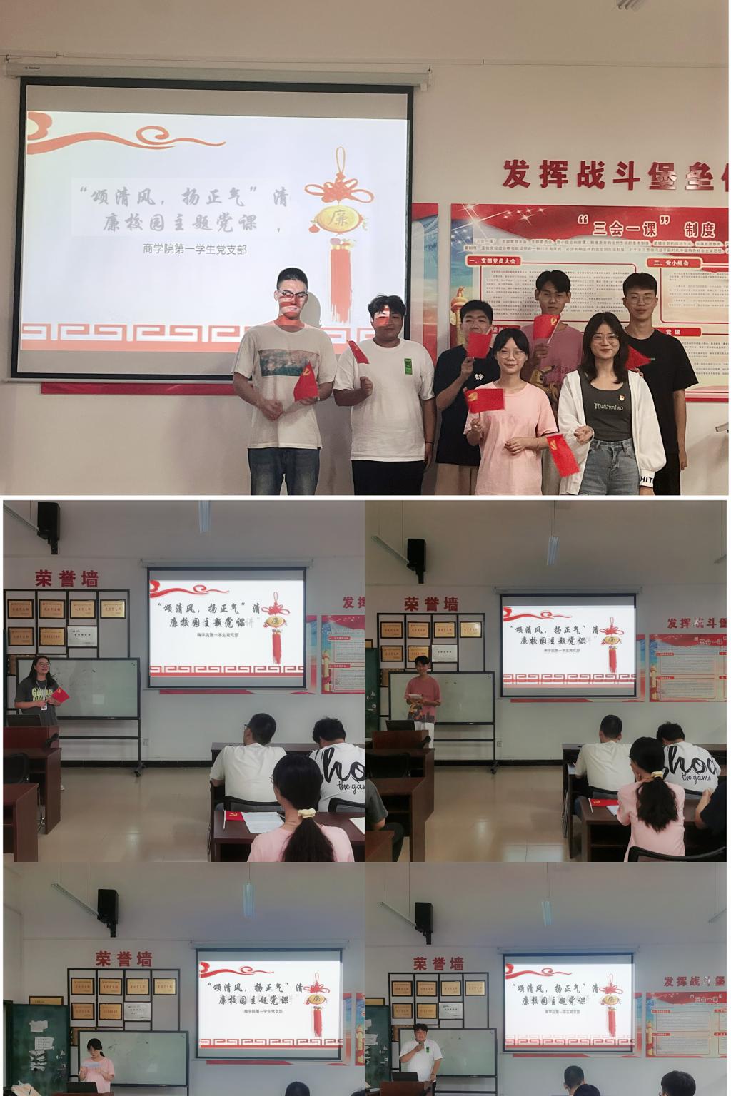 为加强清廉文化教育,积极创建清廉学校,11月3日,商学院党总支在11501教室组织开展“颂清风,扬正气”主题党课,由第一学生党支部书记李静怡老师主讲,全体学生党员参加。