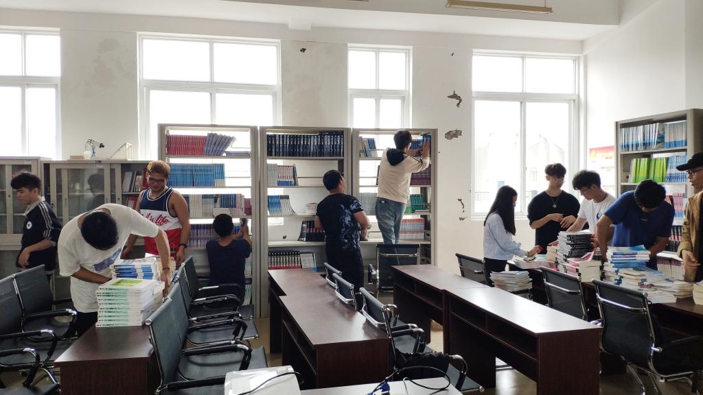 此次义务劳动主要将41402办公室的图书搬至党员活动室,然后将党员活动室的所有图书进行加盖学院图书馆公章,再重新进行分类和摆放。劳动现场,志愿者们分成小组,有条不紊地开展了相关劳动。在大家的积极配合下高效完成了工作,不仅进行了书籍分类,还将党员活动室打扫干净,凌乱的党员活动室变得焕然一新。