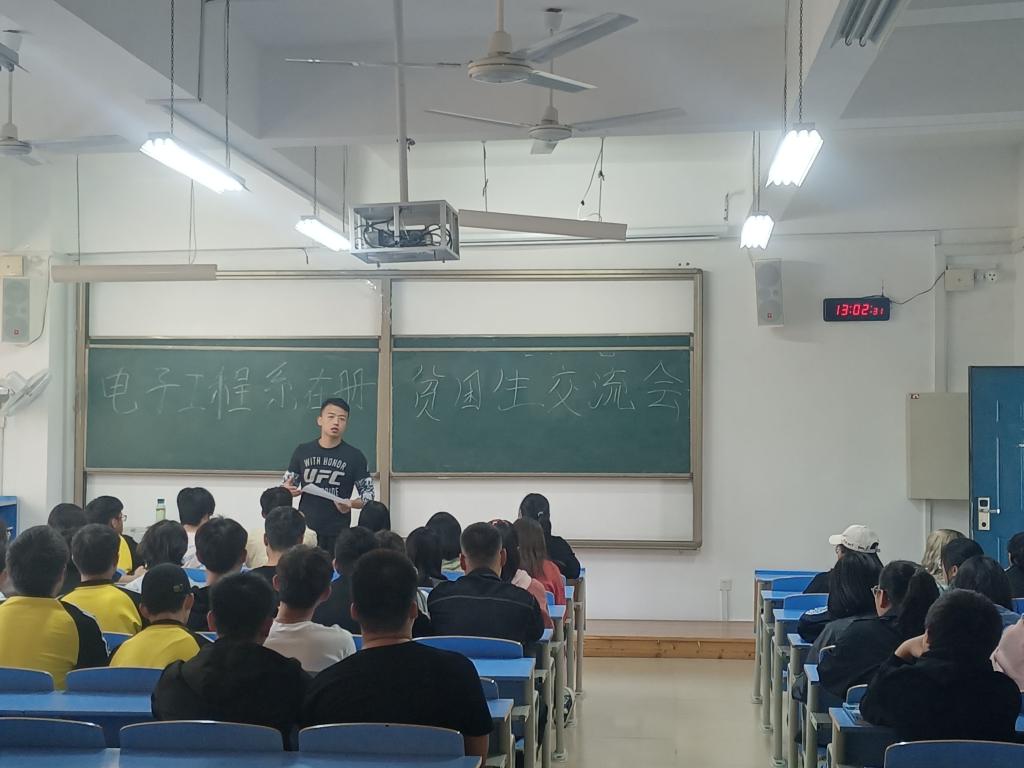 11月10日中午,电子工程系于32307教室召开在册贫困生交流会,会议由2020级辅导员范恒祯主持,2020级全体在册贫困生参加会议。