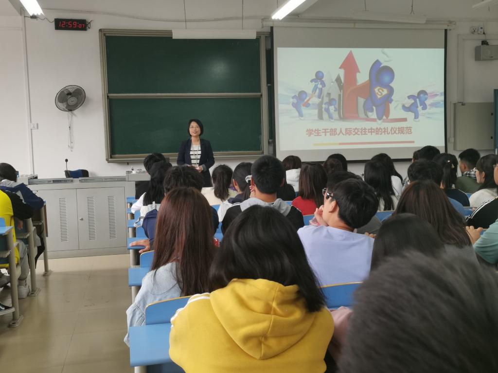 11月5日中午,电子工程系在32309教室开展“礼仪规范”主题干部培训,系党总支书记庄璧瑛担任主讲人,第十四届两委全体成员参加了本次培训。