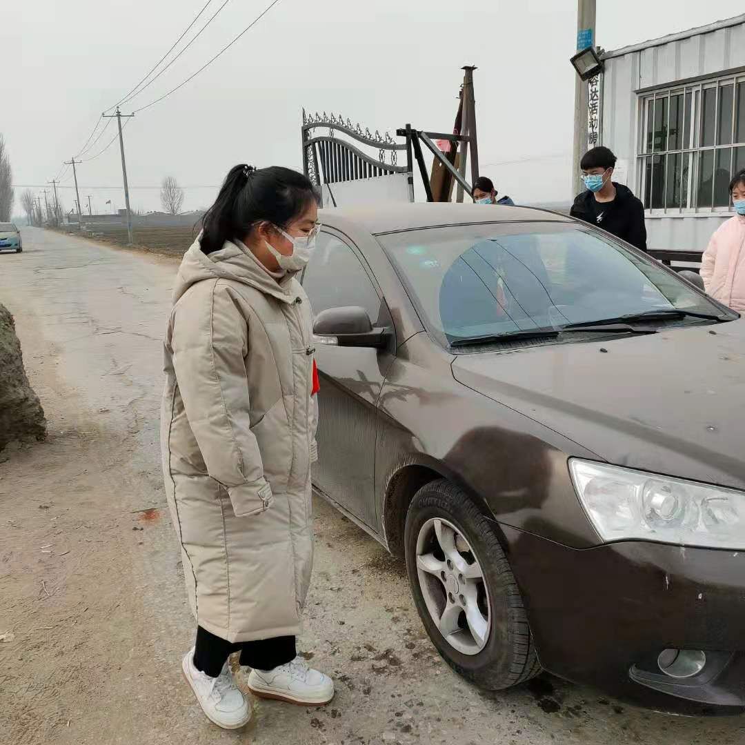 2020级自动化二班杨荣坤在河北省定州市邢邑镇北王宿村对来往的行人、车辆进行排查询问、登记、贴封条。