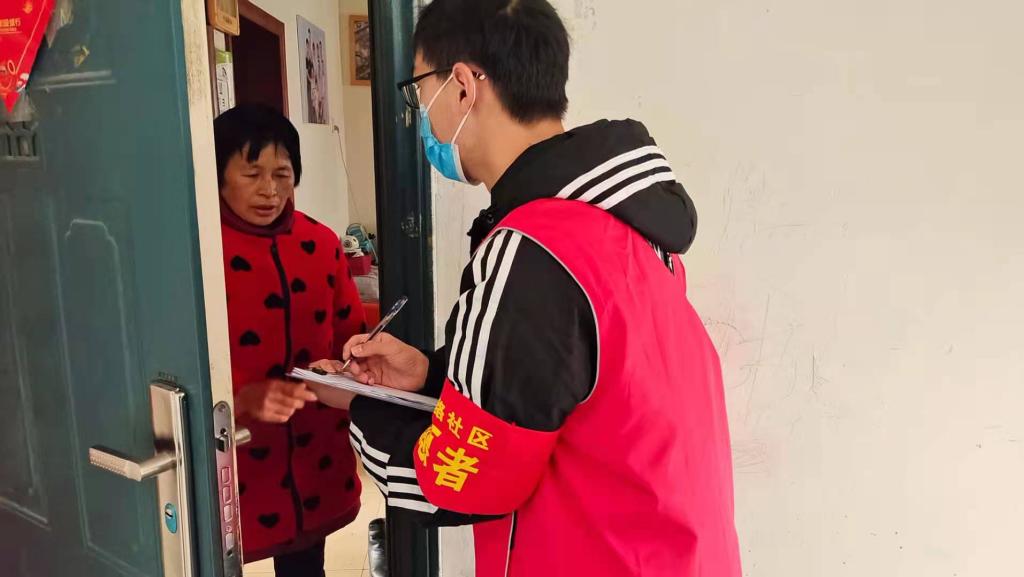 19级电信五班艾文浩在湖北省襄阳市樊城区松鹤路污水净化厂家属院小区门口,登记外来人口进入小区的原因;在君和府邸家属院小区内拜访各个住户,登记补全他们的个人信息。