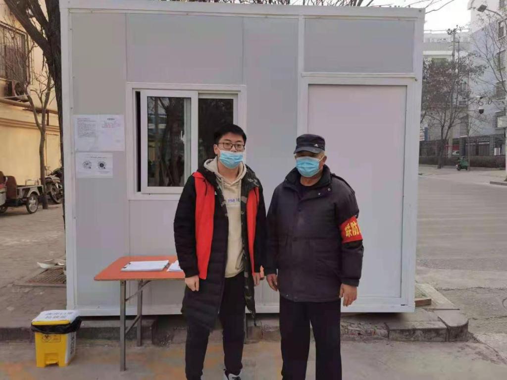 19级电信四班李飞宇在河北省衡水市永兴社区,对进出生活区的车辆和人员进行逐一检查登记,认真查看健康码、行程码,对驾乘人员进行体温检测;关注是否有外来的流动人口,是否会对当地的疫情安全造成影响,发现问题第一时间向所在社区汇报。