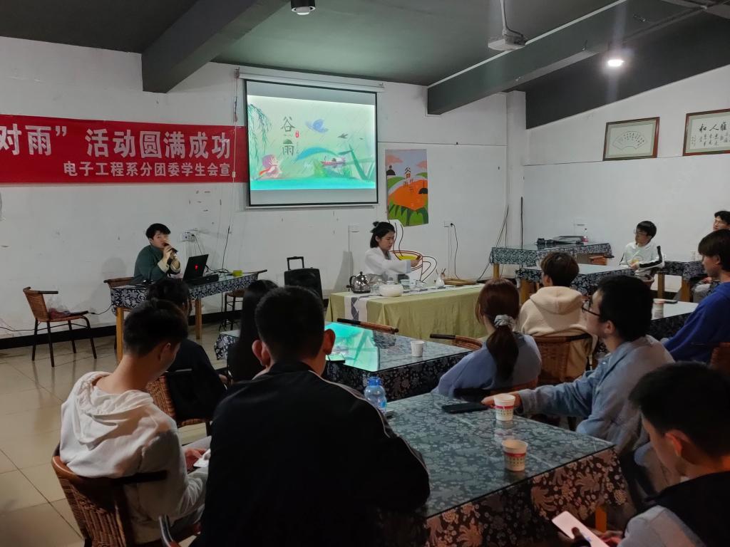 为丰富校园文化生活,加深同学们对中华传统文化的认识。4月20日,电子工程系分团委学生会面向全院同学开展“谷雨谷雨,饮茶对雨”主题活动。