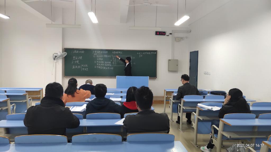 4月8日下午,电子工程系在32206教室开展新学期第一次专任教师招聘试讲工作,会议由系办事务助理岳庆英主持,学院教学督导主任凌惜勤、系副主任韩桂明、各教研室主任以及相关课程的专任教师代表共8人担任评委。