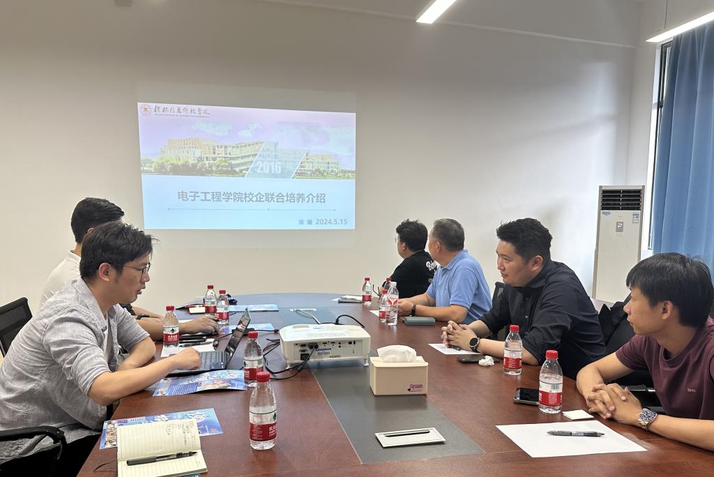 杨意嵩代表深圳泽盛半导体技术有限公司向与会人员介绍了公司概况、近几年的发展与取得的成绩。座谈会上,双方就校企课程、3+1联合人才培养等主题进行了充分交流。