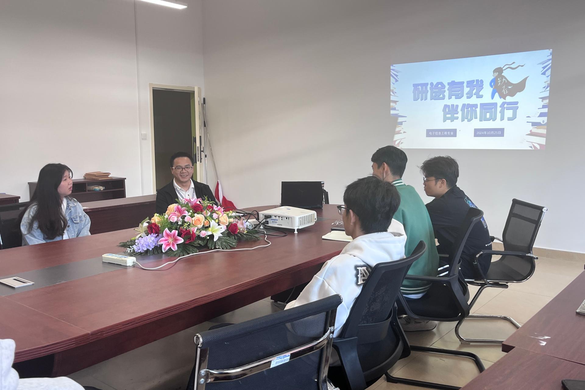 为使学生更好地理解考研趋势、做出合理的院校选择,帮助学生更有效地规划考研复习。10月25日中午,电子工程学院2022级电子信息工程专业在A513会议室开展考研座谈会。年级主任陈思宇老师、电子信息工程教研室袁青松老师和彭怀敏老师、辅导员李嘉欣老师以及18名有考研意向的学生参加会议。