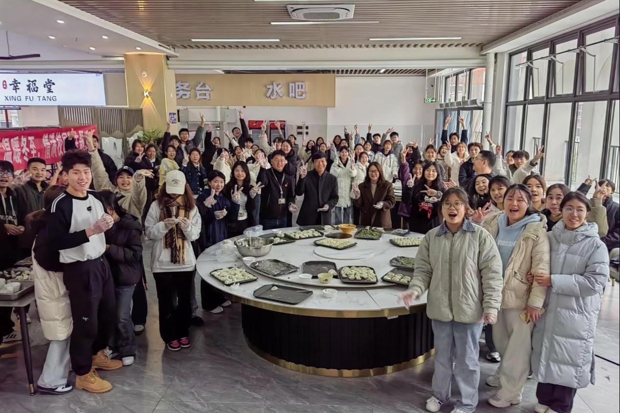 冬至作为传统节日,承载着中华民族深厚的文化底蕴,此次活动不仅是对传统文化的传承与弘扬,更是促进师生情谊、增强校园凝聚力的良好契机。包饺子过程中,解庆林校长、陈玲萍副校长和王东云院长与师生们围坐一团,一边包着形态各异的饺子,一边交流着各地冬至习俗,欢声笑语不断,现场其乐融融。不多时,形态各异却饱含深情的饺子摆满了案板。