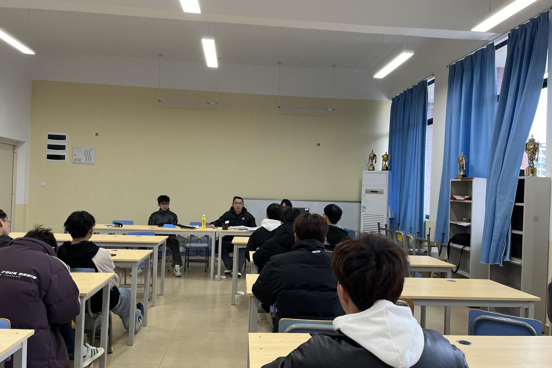 为确保新学期训练的有序进行,增强队员间的凝聚力,电子工程学院于2025年2月18日在A415教室召开了田径队见面会。此次会议由团委副书记彭博涛主持,田径队全体成员积极参与。