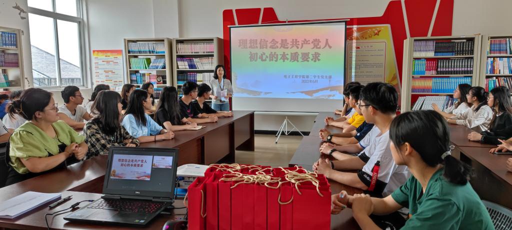 为加强党员教育管理工作,提高党员队伍建设质量,6月26日,电子工程学院第二学生党支部开展《理想信念是共产党人初心的本质要求》专题党课学习,本次党课由学院第二学生党支部书记周郁主讲,全体学生党员参加本次党课学习。